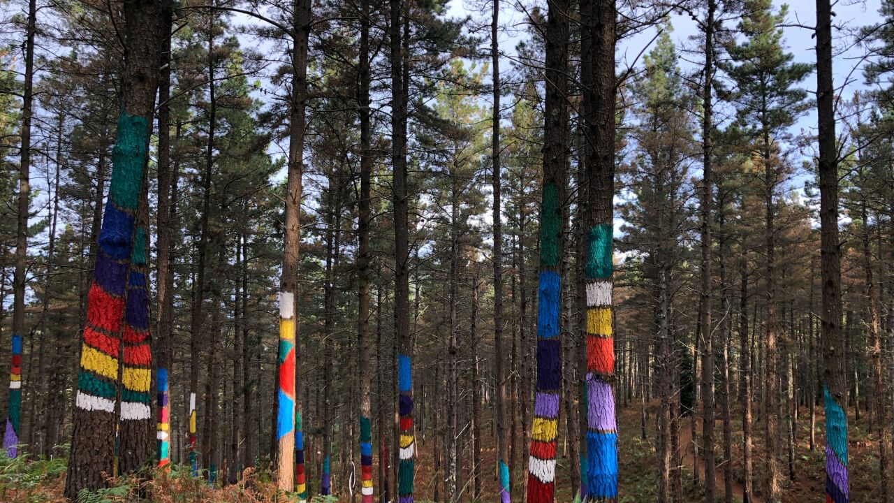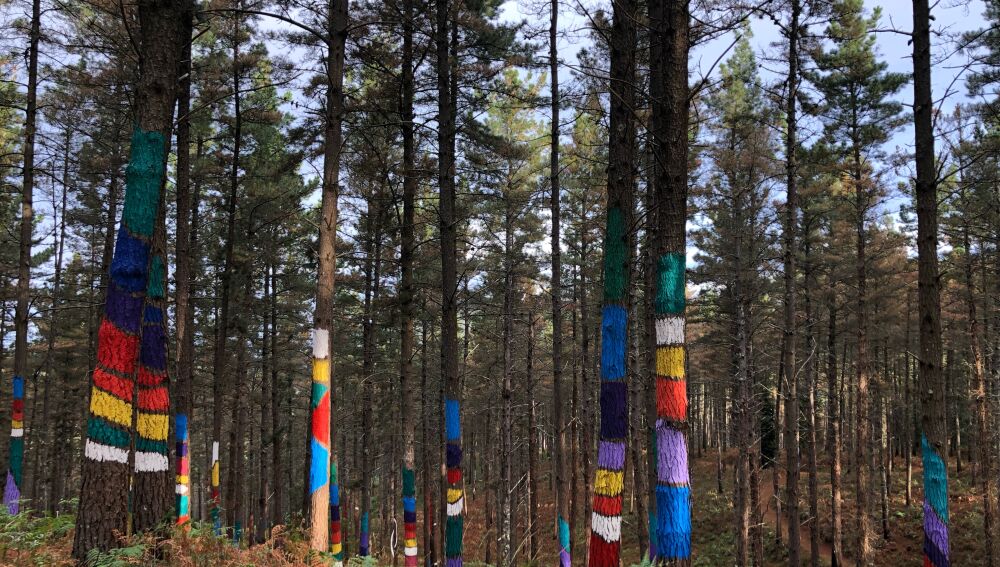 Fue en el año 1982 cuando el artista Agustín Ibarrola comenzó a pintar los pinos que estaban cerca de su caserío para utilizar este paisaje a modo de lienzo para su expresión artística. Mas de 40 años han pasado desde ese momento y a día hoy, ese bosque es conocido por todos los vizcaínos e incluso por los visitantes que se acercan a disfrutar de sus pinturas.