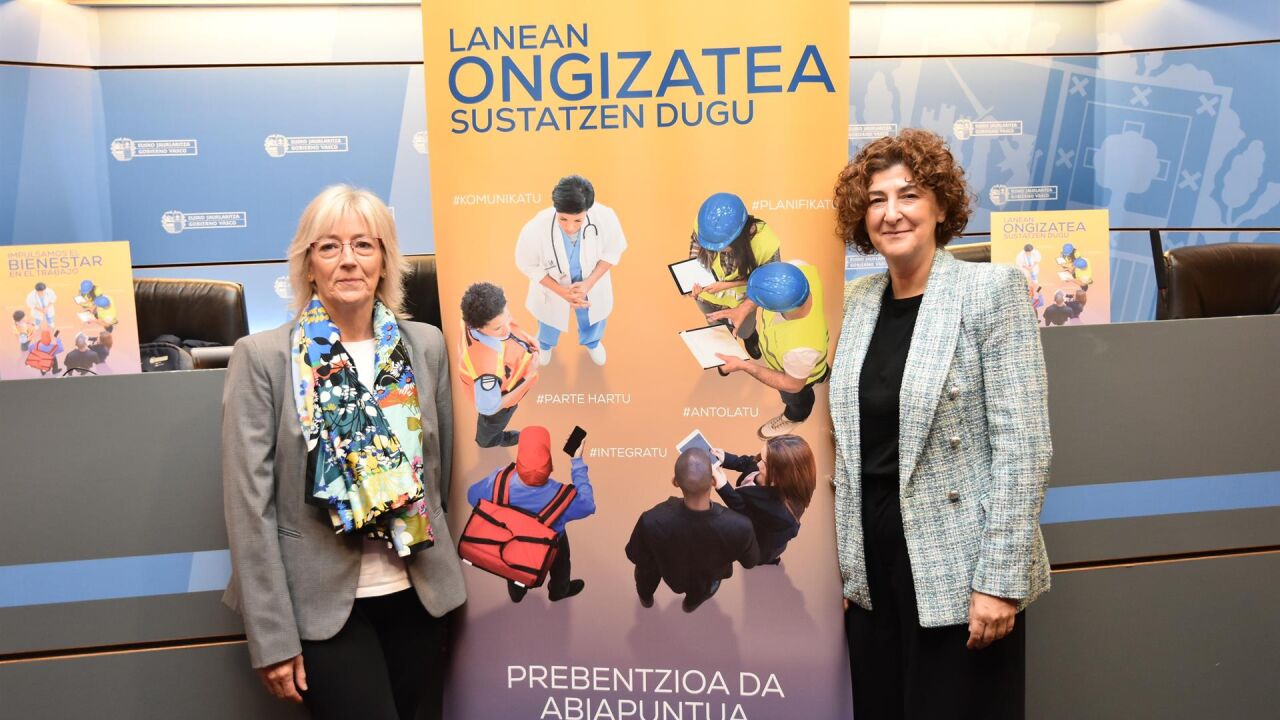 La viceconsejera de Trabajo y Seguridad Social, Elena Pérez Barredo, y la directora general de Osalan, Lourdes Íscar Reina, han presentado este lunes la nueva campaña de sensibilización del Instituto Vasco de Seguridad y Salud Laborales sobre prevención de riesgos laborales, en el marco del Día Mundial de la Seguridad y la Salud en el Trabajo, que se conmemora este 28 de abril.