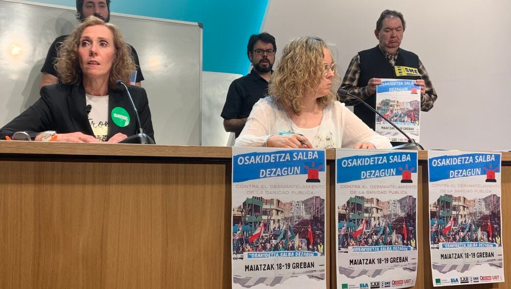 ELA, SATSE, LAB, SME, CC. OO. y UGT convocan a los 37.0000 trabajadores de Osakidetza a una huelga de dos días, 18 y 19 de Mayo ante la grave situación que atraviesa el servicio vasco de salud y el bloqueo dela negociación colectiva. Aseguran que "los problemas de nuestra sanidad pública son estructurales" y exigen "voluntad política" al Departamento de Salud para adoptar las "soluciones inmediatas y de calado" que Osakidetza necesita.