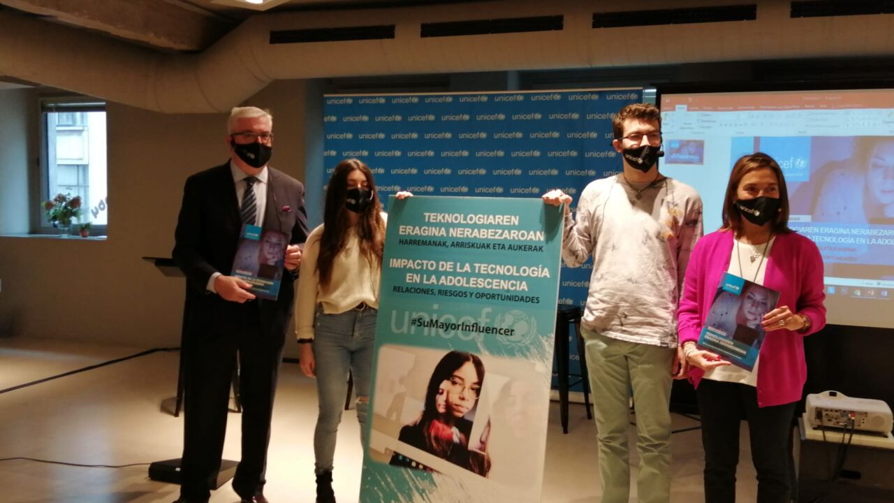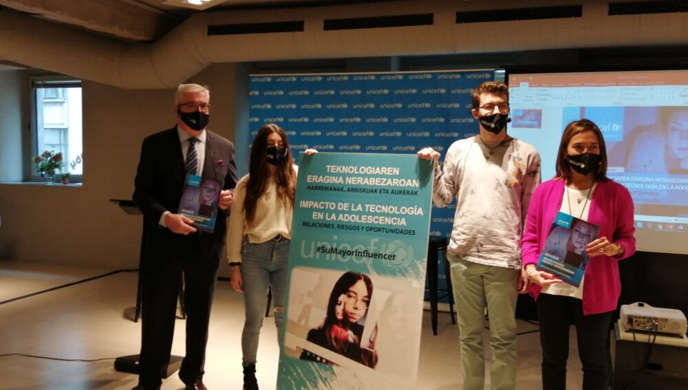 El presidente de UNICEF Comité País Vasco, Isidro Elezgarai ha destacado entre los datos del estudio en Euskadi que el 96,8% tiene móvil con conexión a Internet. Además, el 35,8% de los y las adolescentes encuestadas asegura haber entrado en páginas de contenido erótico o pornográfico, uno de cada diez ha recibido, a través de redes, chats Internet o videojuegos, una proposición sexual por parte de una persona adulta y dos de cada diez podría estar siendo víctima de ciberacoso. En este sentido, desde UNICEF insisten en que la lucha contra el acoso escolar y el ciberacoso debe ser una prioridad, al igual que tomar medidas para reducir las preocupantes cifras de sexting o grooming, ya que con los datos que se manejan en la actualidad se constata la "estrecha relación de nuevas formas de adicción o uso problemático de la tecnología y la salud mental, con mayores tasas de depresión" que hacen que se esté convirtiendo en "un problema de salud pública".