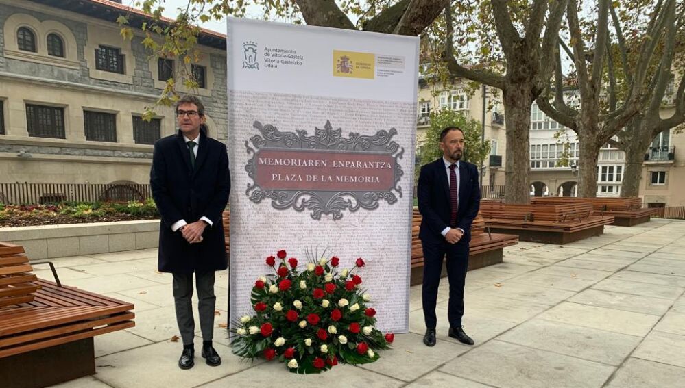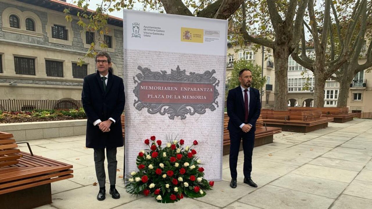 El delegado del Gobierno en el País Vasco y el Ayuntamiento de Vitoria-Gasteiz han inaugurado la Plaza de la Memoria dedicada a las víctimas del terrorismo, una plaza que se convertirá en un nuevo espacio de encuentro peatonal y de calidad en pleno corazón de la capital alavesa