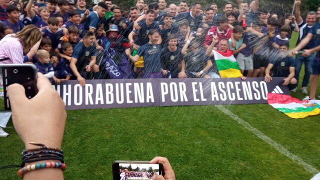 Hoy toca festejar el ascenso del Anguiano y no vamos a hacer hincapié en cosas vanas como el tema económico, cómo plantea el Anguiano, y especialmente la familia Neila, la próxima temporada. Si el campo de Isla reúne o no las condiciones para jugar en 2ªRFEF, etc, etc. Por cierto, fiesta también la que se vivió anoche en Navarrete cuando se enteraron que el ascenso del Anguiano restaba una plaza de descenso de 3ªRFEF por lo que el Tedeón, que se consideraba descendido a Regional, mantiene la 3ªRFEF la próxima temporada.