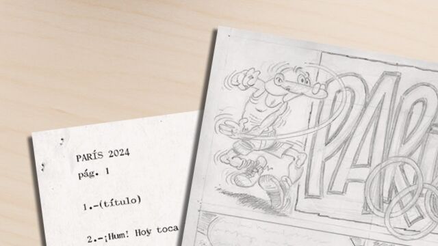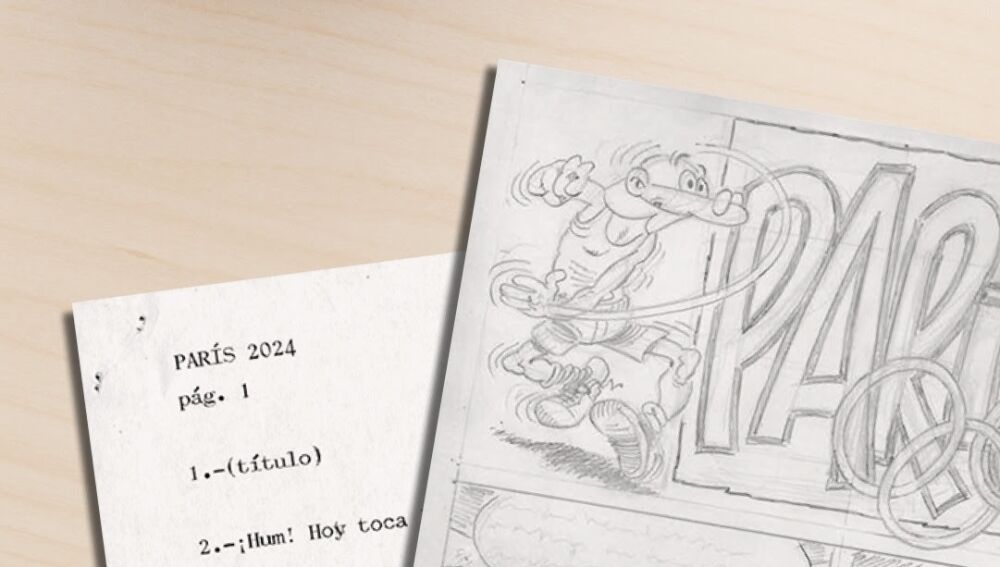 Sin color, entintando ni cualquier otro tipo de acabado, esta obra inconclusa que recuerda a los trabajos inacabados de Hergé es una ventana a la mente creativa del historietista. En esta última andanza, Mortadelo y Filemón viajan hasta París para salvar las Olimpiadas que tendrán lugar este próximo verano.