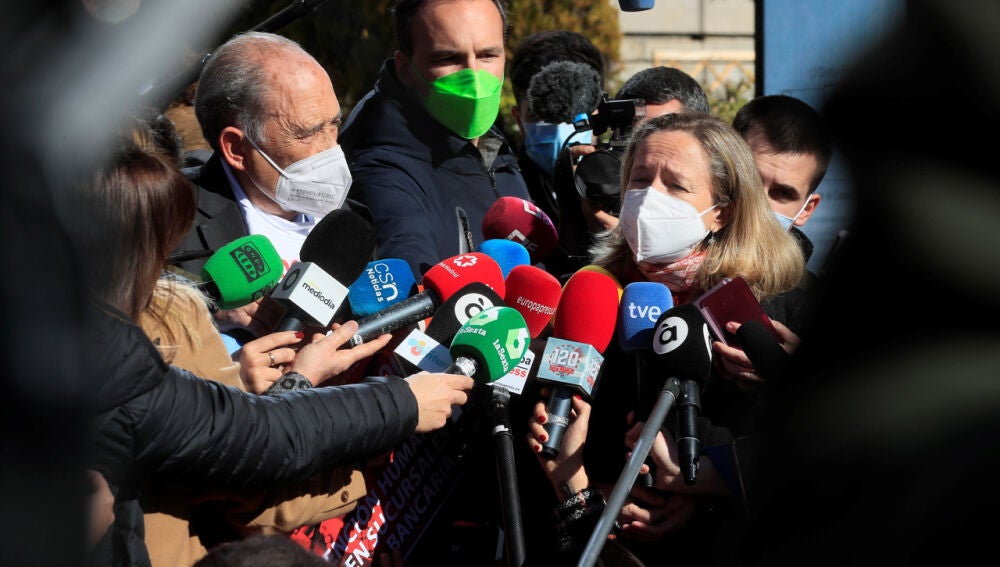 "Esta es la aproximación que tenemos (de conclusión del plan) y vamos a hacer todo lo posible por resolver esto", ha aseverado la ministra de Asuntos Económicos ante la sorpresa de Carlos, que no esperaba ser atendido por ella.