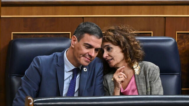 El presidente del Gobierno, Pedro Sánchez, y la vicepresidenta primera, María Jesús Montero, en el pleno celebrado en el Congreso. | EFE/FERNANDO VILLAR