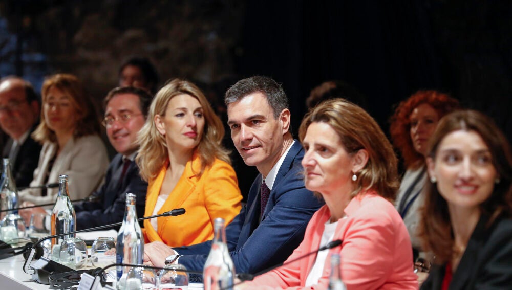 Pedro Sánchez junto a sus ministros durante la Cumbre Hispano-Portuguesa | EFE