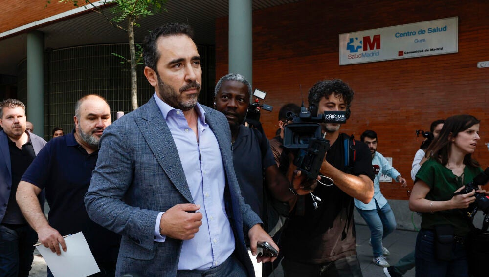 El empresario Víctor de Aldama (i), investigado en el caso Koldo, tras su aparición este miércoles durante la comparecencia ante la prensa de la militante del PSOE Leire Díez en la que ha asegurado que "ha mentido en todo". | EFE