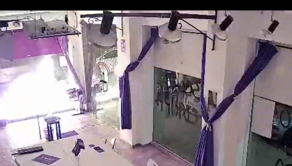 En las imágenes, grabadas por las cámaras de seguridad de la sede, aparecen los cristales con pintadas, una de ellas con la leyenda "Hijos de puta", mientras una persona enciende un cóctel molotov y lo lanza contra ella provocando un pequeño incendio en la parte exterior.