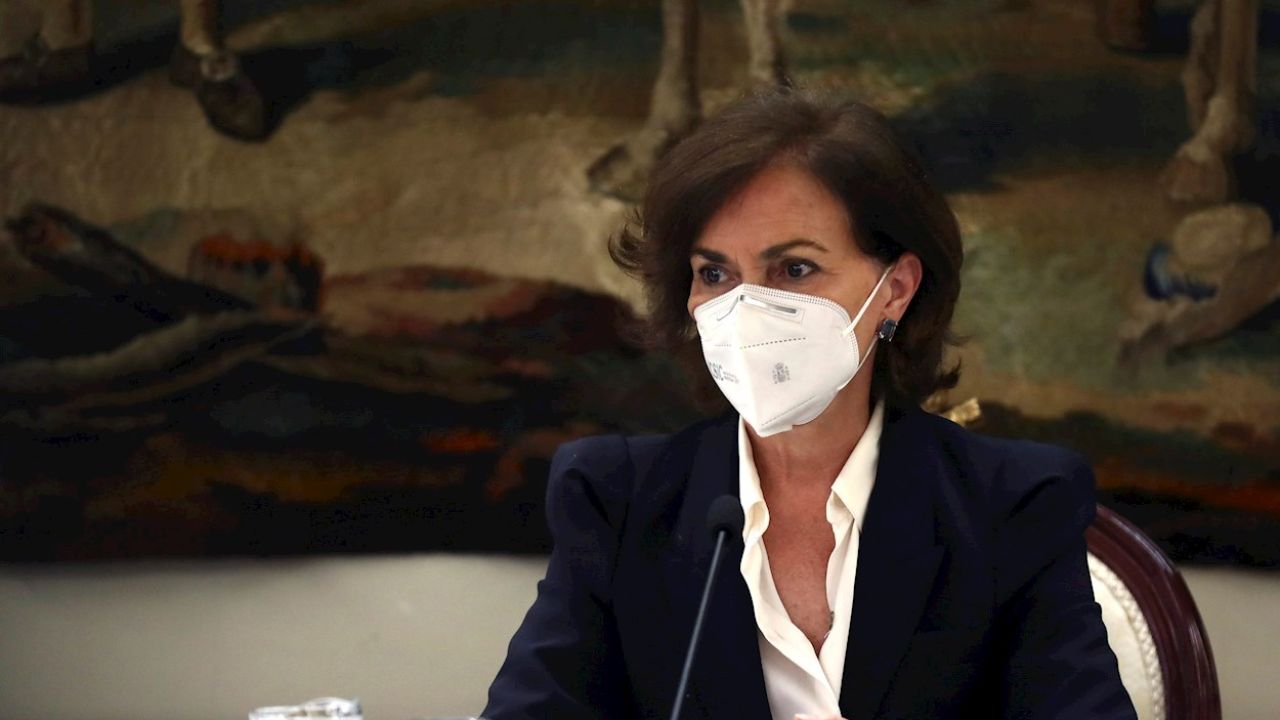 "Aquí no se trata de lo que quieren o no quieren las Comunidades Autónomas", ha dicho la vicepresidenta del Gobierno en una entrevista en Canal Sur, a propósito de no prorrogar el estado de alarma más allá de 9 de mayo. "Se trata de lo que conviene", según Carmen Calvo, que ve perfectamente compatible conjugar los derechos fundamentales con la protección. ¿Cómo? Pues ha apelado a la inteligencia de las Comunidades Autónomas.