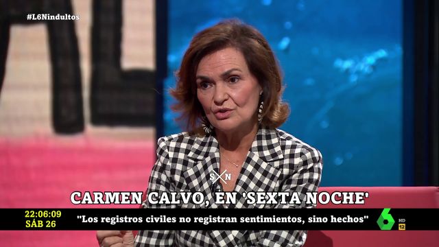 Carmen Calvo ha acudido este sábado a La Sexta Noche y ha hablado sobre la ley trans y algunos de sus puntos más polémicos.