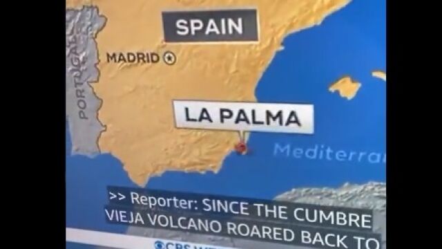 En una información de la cadena estadounidense CBS daban la última hora de la erupción en La Palma y para sorpresa de muchos situaban la isla de La Palma en Murcia, en concreto en el municipio de Cartagena. La explicación es una pequeña confusión. Porque en Cartagena hay un pueblo con el mismo nombre, La Palma. Eso lo explica todo.