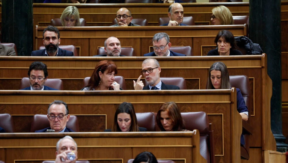 PP, Vox, PNV y Junts han unido este jueves sus votos en el Congreso para tumbar el gravamen extraordinario a las grandes energéticas, una alianza que también ha permitido -en este caso, sin el apoyo de la formación vasca- sacar adelante la propuesta de Junts de bajar el IVA a los yogures.