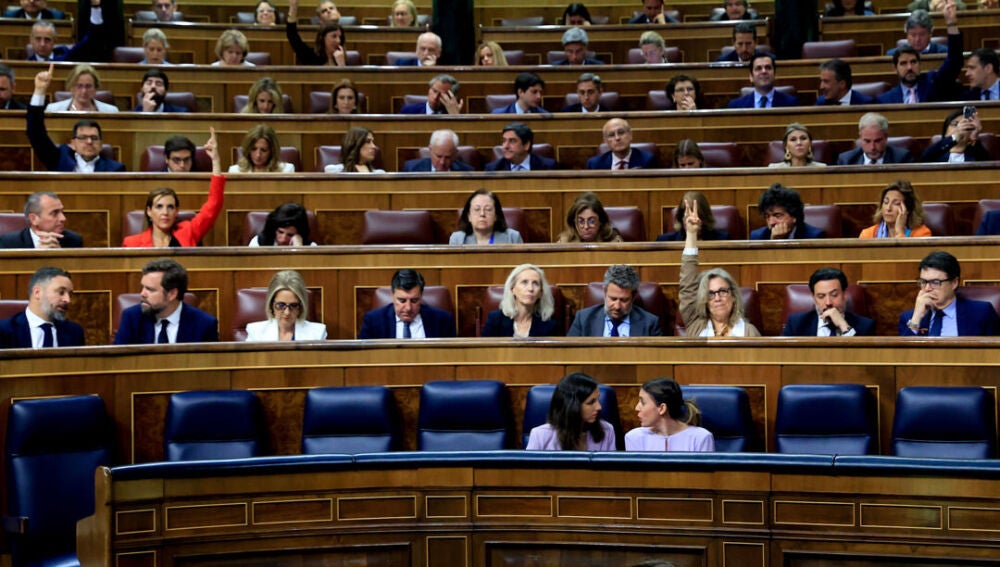 "Estamos a tiempo antes de mañana de mandarle un mensaje contundente a los españoles de que los derechos feministas no se negocian con el PP", fueron las palabras de la ministra de Igualdad, Irene Montero, este miércoles durante la sesión de control al Gobierno en el Congreso de los Diputados.
