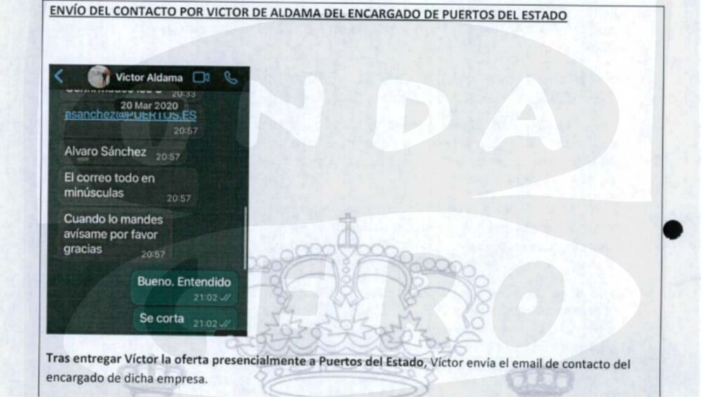 “Tras entregar Víctor la oferta presencialmente en Puertos del Estado, envía el email de contacto del encargado de dicha empresa”, concluye la ONIF.