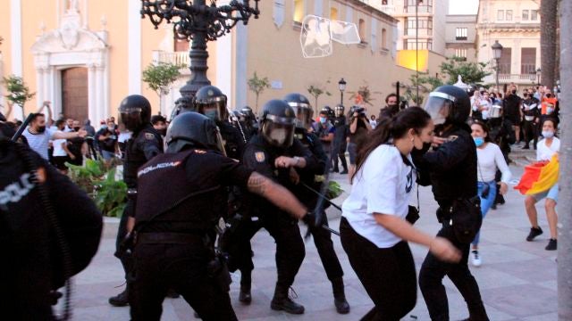 Siete de los agentes que participaron en disolver a los concentrados en varias cargas resultaron heridos, principalmente por el lanzamiento de piedras, según ha informado la Jefatura Superior de Policía. Los incidentes se iniciaron sobre las 21.30 horas y finalizaron cerca de una hora después.