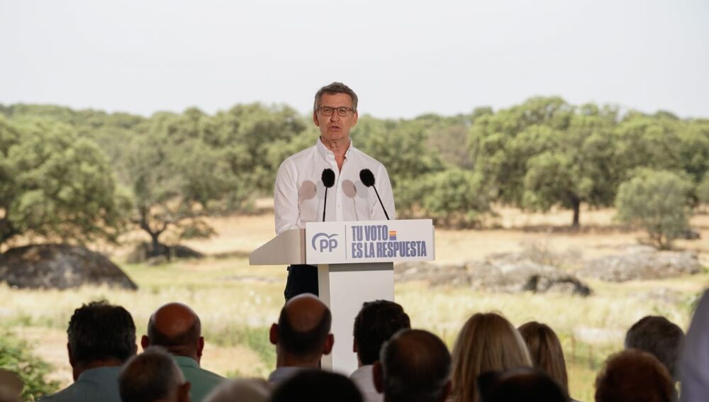 El líder del PP ha hecho estas manifestaciones en un acto electoral en la dehesa boyal de la localidad cacereña de Torremocha, con motivo del Día Internacional del Medio Ambiente y enmarcado en la campaña electoral europea, en el que ha estado acompañado de la presidenta extremeña, María Guardiola.