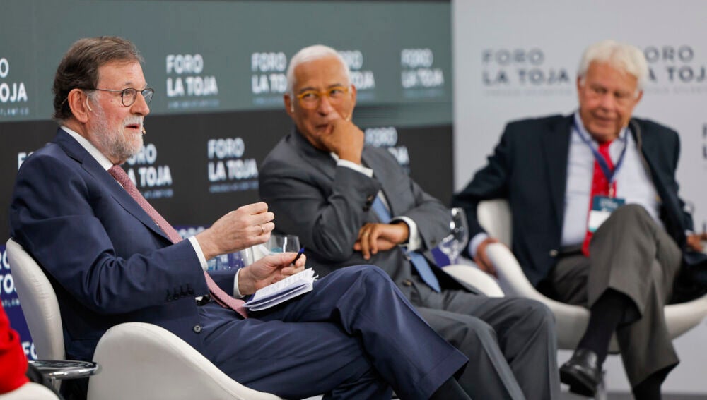 González y Rajoy han participado en un diálogo en la VI edición del Foro La Toja-Vínculo Atlántico, una cita de ambos ya tradicional en este evento, pero a la que este año se ha sumado el presidente electo del Consejo Europeo, António Costa, ya que abordaron el futuro de la Unión Europea.