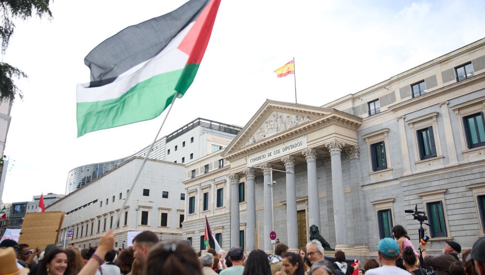 Unas 500 personas se han concentrado en la puerta del Congreso para exigir el embargo a Israel. Entre ellos estaban la portavoz de Sumar, Verónica Barbero; Gerardo Pisarello, de En Comú Podem; y Gabriel Rufián, de ERC.