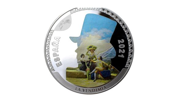 En el caso de los líderes europeos, recibirán un cincuentín de plata con un fragmento de la obra 'La Vendimia o El Otoño' y el autorretrato del pintor en el anverso. Esta moneda tiene una tirada de 2.000 piezas y su precio es de 363 euros. Se emitió en 2021 y tiene un peso de 168 gramos.