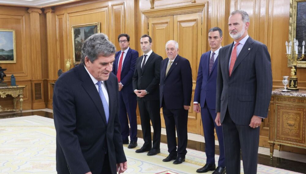 El ministro para la Transformación Digital y de la Función Pública, Óscar López, y el gobernador del Banco de España, José Luis Escrivá, han prometido este viernes sus respectivos cargos ante el Rey Felipe VI en el Palacio de la Zarzuela.