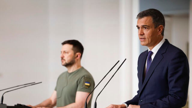 El presidente del gobierno español, Pedro Sánchez, y el presidente de Ucrania, Volodímir Zelenski, en una imagen de archivo. | EFE/ Chema Moya