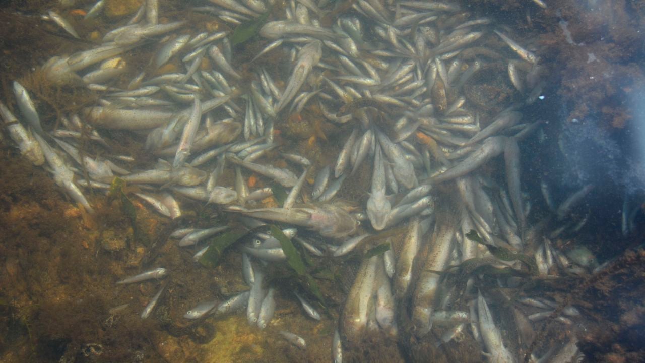 Según ha informado el Consistorio en un comunicado., una vez más se han detectado numerosos cadáveres de peces que, además, son de mayor tamaño que en días previos -de hasta 20 centímetros-, así como de especies como langostinos o magres que hasta ahora no habían aparecido.