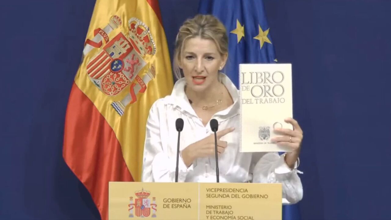 La ministra de Trabajo ha calificado al 'Libro de Oro' en el que se recogen los reconocimientos a dirigentes franquistas como el "libro de la infamia".