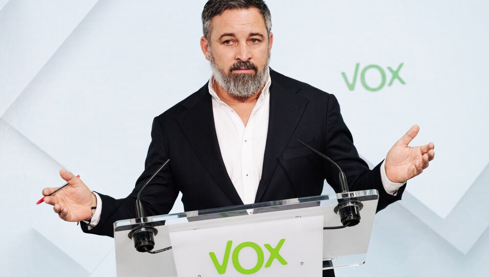 Santiago Abascal, líder de Vox durante una rueda de prensa a los medios | Carlos Luján / Europa Press