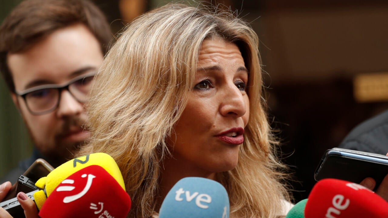La vicepresidenta segunda del Gobierno y ministra de Trabajo y Economía Social, Yolanda Díaz, atiende a los periodistas | EFE