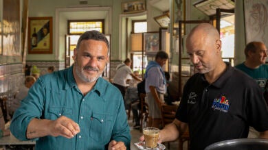 Ángel León añade unas gotas de limón al mollete de pringá y chicharrones del bar 'Vicente Los Pepes' | Juan Carlos Toro | Guía Repsol