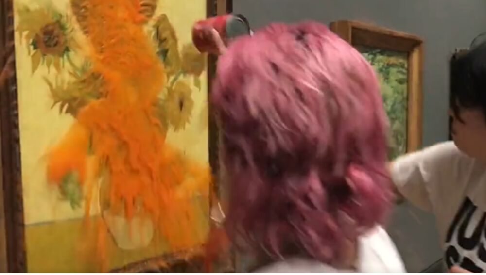 Dos activistas contra el cambio climático destrozan los Girasoles de Vincent van Gogh en la National Gallery