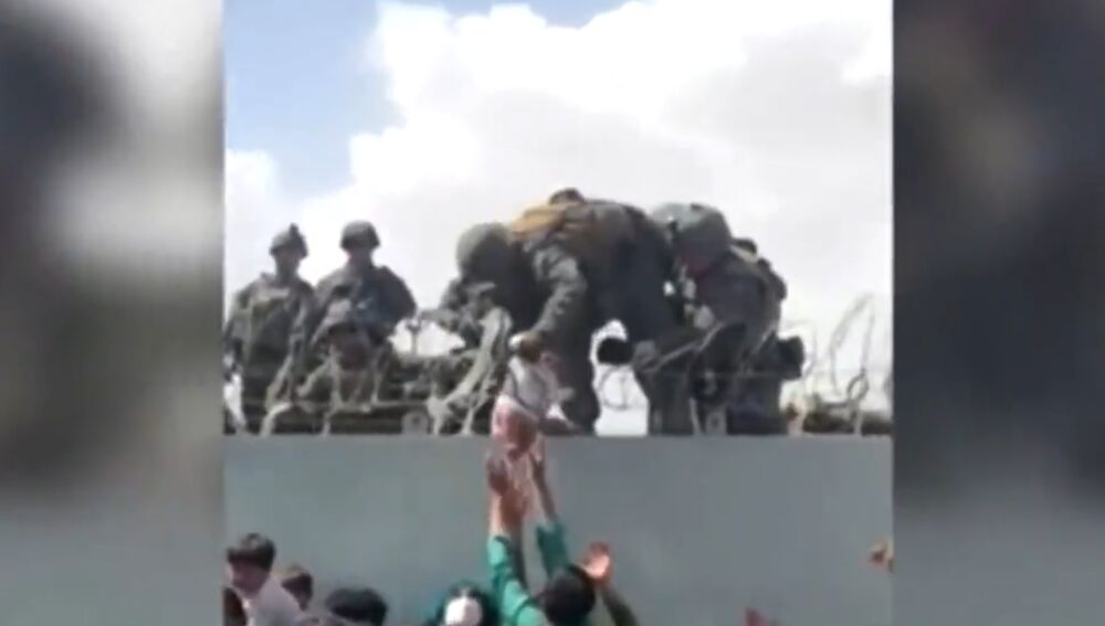 Este viernes se ha viralizado un vídeo realmente dramático, en el que se muestra una aglomeración intentando entrar en el aeropuerto y, ante la imposibilidad, unos padres deciden entregar a su bebé a uno de los militares que controlaban el recinto para garantizar que pueda tener un futuro mejor.