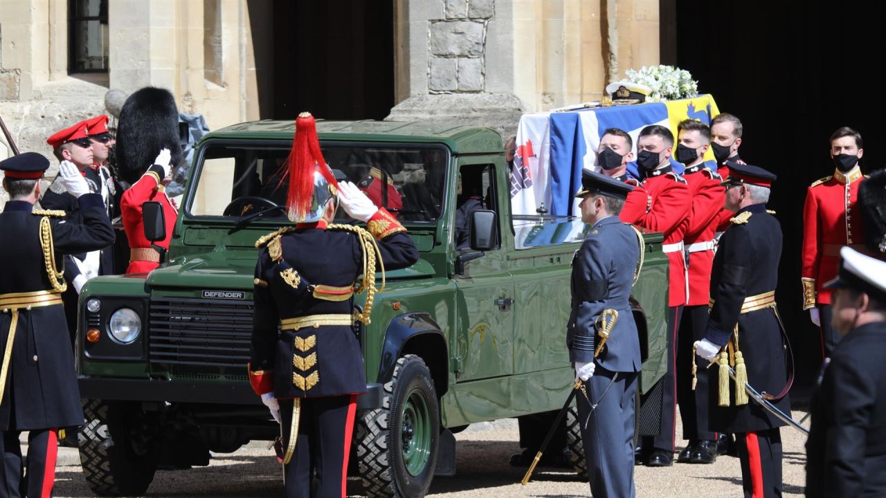 El coche fúnebre, un vehículo híbrido customizado por el mismo duque, llegó al templo flanqueado por representantes de diferentes regimientos militares y seguido por sus cuatro hijos en primera línea, tras una procesión de unos 15 minutos desde el castillo, antes de comenzar la ceremonia, con solo 30 invitados.