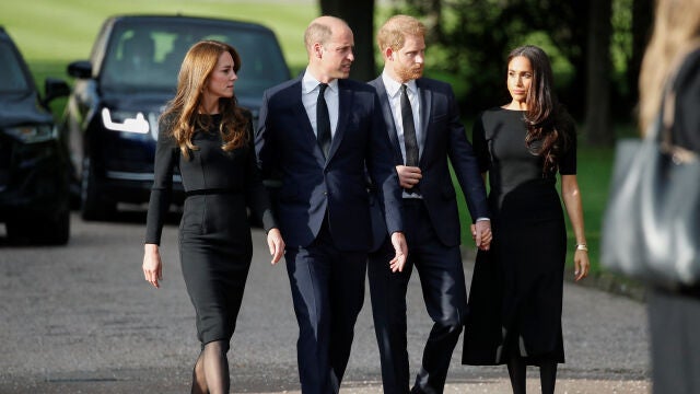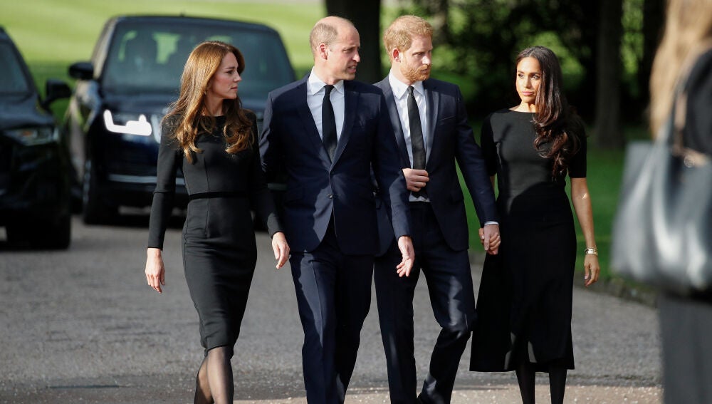 Los príncipes Guillermo y Enrique, distanciados desde hace más de un año, han salido juntos con sus respectivas esposas, Catalina y Meghan, al exterior del castillo de Windsor, a las afueras de Londres, para saludar a la gente allí congregada para expresar el pésame por la muerte de Isabel II.