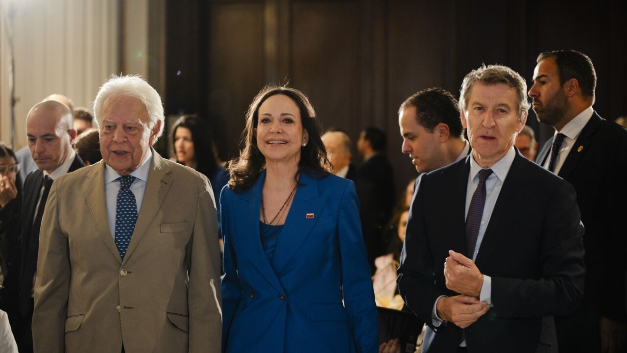 El expresidente Felipe González, que ha presentado a María Corina en un desayuno organizado por el Nueva Economía Forum, expresa la admiración por su “liderazgo no mercenario”, exige un calendario electoral y que regrese a casa con garantías de seguridad. María Corina asegura que el único que se ha jugado el tipo por Venezuela es el presidente norteamericano Donald Trump.
