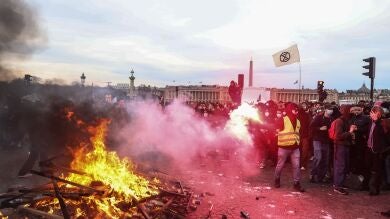 Miles de personas de personas se han congregado en la Plaza de la Concordia de París, a unos pasos del Parlamento francés, para denunciar el "paso forzado" del Ejecutivo al hacer uso del artículo 49.3 de la Constitución para la reforma de las pensiones, la cual no había conseguido el apoyo de la Asamblea Nacional para que saliera adelante.
