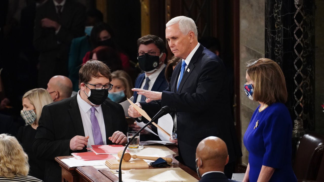 Mike Pence, vicepresidente de los Estados Unidos, que hoy mismo ha sido criticado por Donald Trump, que ha insistido en calificar las elecciones de fraudulentas, ha sido el encargado de reanudar una sesión histórica. "Hoy hemos defendido nuestro Capitolio", ha inciado Pence su discurso. "La violencia nunca gana. Gana nuestra libertad; esta sigue siendo la casa del pueblo. Cuando nos volvamos a reunir en esta cámara, el mundo volverá a presenciar la resistencia y la fuerza de nuestra democracia", ha aseverado el republicano."Volvamos al trabajo", ha apuntado Pence, una frase que será recordada tras el violento asalto.