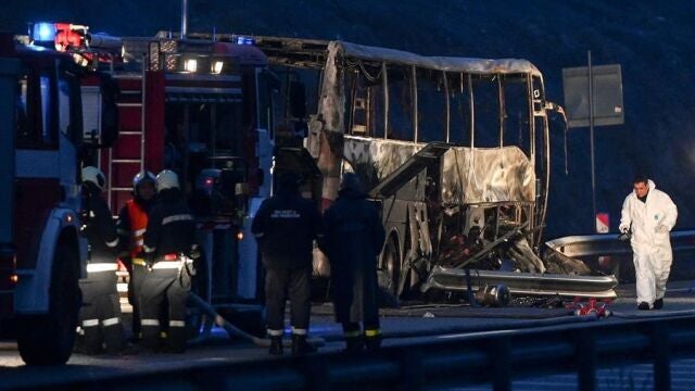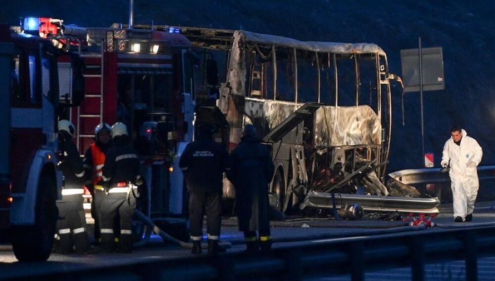 Los cuerpos de las víctimas han quedado "completamente calcinados", declaró el titular de esa cartera, Boyko Rashkov, en el lugar del siniestro, informa la emisora BTV. Las imágenes transmitidas por esa televisión pública mostraron el chasis del autobús completamente quemado.