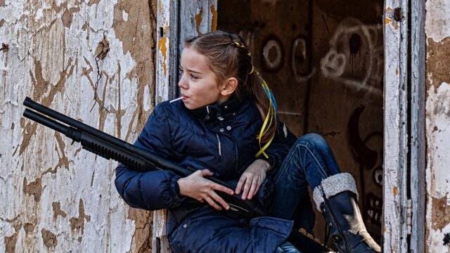 La guerra de Ucrania sigue dejándonos imágenes impactantes. La última ha tenido a esta niña, de apenas nueve años, como protagonista. La pequeña espera en una ventana con un fusil de asalto mientras se come una piruleta.