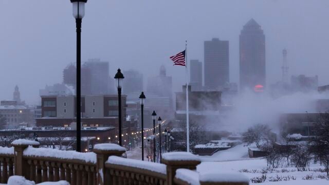 En partes de ese estado la temperatura más elevada en las últimas horas fue de 10 grados bajo cero mientras en Des Moines se acumulaban este sábado 25 centímetros de nieve.