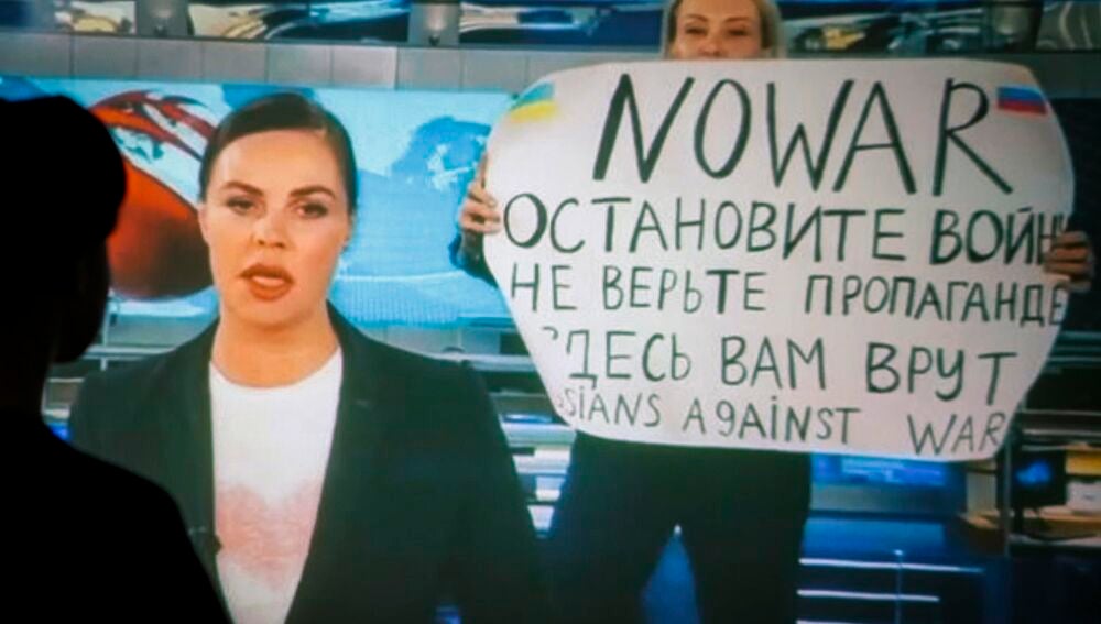 A principios del mes de marzo, Marina Ovsyannikova, irrumpió en el programa de noticias de la noche del canal de televisión Pervy Kanal con una pancarta que advertía a la población de que no creyera la información difundida por el Kremlin. Por este gesto la periodista fue detenida y se le impuso una multa.
