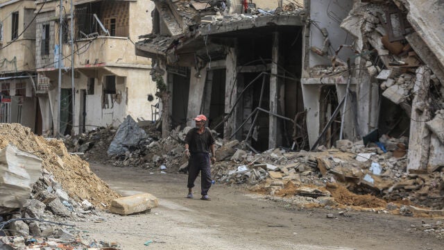 Un palestino observa la destrucción en la aldea de Khuza'a, cerca de la valla fronteriza entre Israel y el sur de la Franja de Gaza, durante el alto el fuego temporal entre Israel y Hamás. | Mohammed Talatene / dpa