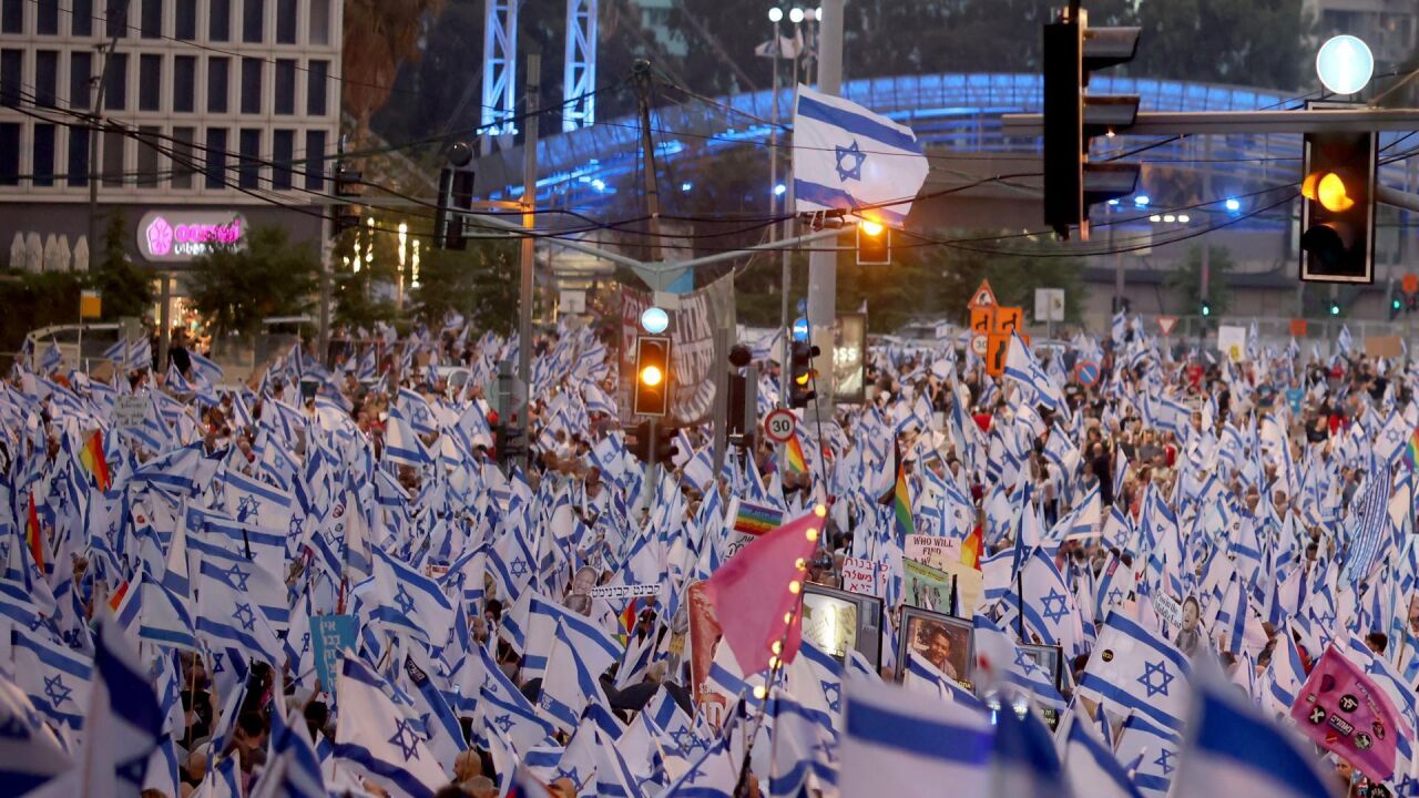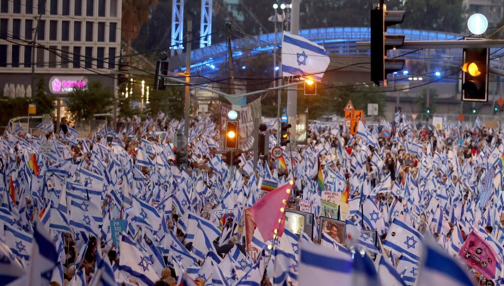 Tal y como lleva sucediendo los últimos seis meses, este sábado cientos de miles de manifestantes han vuelto a congregarse en Tel Aviv, para oponerse a la reforma judicial que busca impulsar el gabinete de Benjamin Netanyahu. Esta medida podría poner en peligro la separación de poderes en el país.