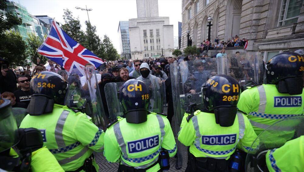 La violencia instigada por grupos de ultraderecha que estalló este fin de semana en ciudades británicas como Liverpool, Bristol, Hull y Manchester se ha saldado con el arresto de más de 90 personas mientras que varios agentes resultaron heridos tras ser atacados con piedras, latas de cerveza, botellas y sillas.