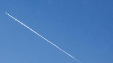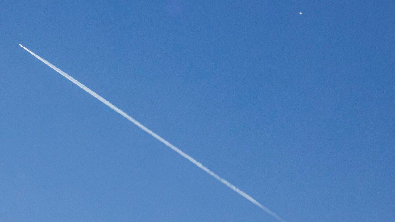 Un avión comercial (i) vuela por debajo del "globo espía" (d) detectado en el espacio aéreo estadounidense | EFE/Nell Redmond