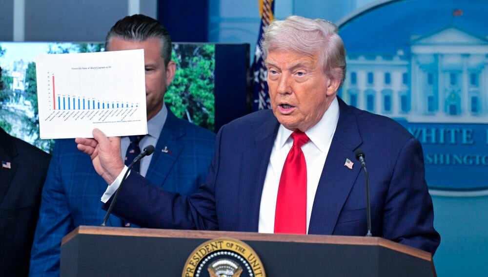 Durante una ambiciosa presentación celebrada en la Casa Blanca, Trump justificó su decisión de tomar el control directo de la Policía Metropolitana de Washington y el despliegue de 800 soldados de la Guardia Nacional ante lo que definió como "una emergencia de seguridad pública".