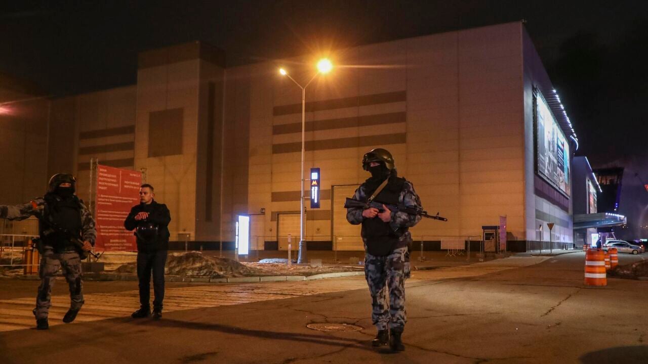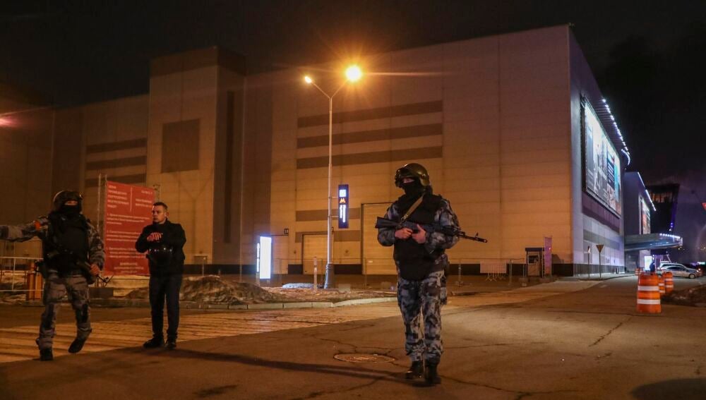 Imagen de un agente de policía tras el atentado en el centro comercial en Moscú | EFE