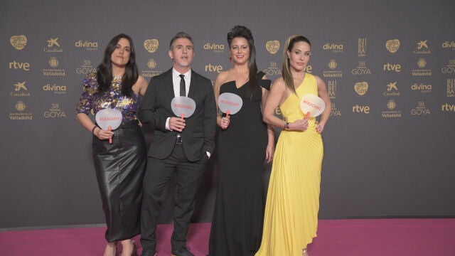 La Asociación de Mujeres Cineastas y de Medios Audiovisuales (CIMA) muestra su apoyo "a todas las víctimas que sufren acoso y que sientan que se vulneran sus derechos" con una acción durante la gala de los 38 Premios Goya, exhibiendo un pai pai con el lema '#SEACABÓ'.