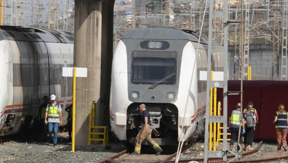 La policía, bomberos y la UME, despliegan el dispositivos para sacar el cadáver de Alvaro Prieto entre dos trenes cerca de la estación de Santa Justa | Eduardo Briones / Europa Press