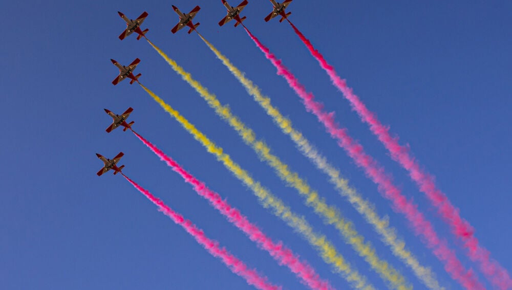 La lluvia ha obligado a cancelar la exhibición aérea enmarcada en el desfile del 12 octubre, el salto de la de la Patrulla Acrobática de Paracaidismo del Ejército del Aire y del Espacio (PAPEA) y la pasada de la Patrulla Águila, ha informado el Ministerio de Defensa.